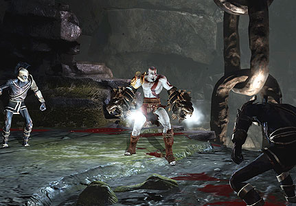 Versucht gar nicht erst, die Statuen mit Quick-Time Events auszuschalten, das dauert viel zu lange. Versucht lieber, sie an den Rand der Arena zu drängen und so eventuell in die Tiefe zu schleudern. Vermeidet es aber, mit einem untoten Soldaten gegen einen der Felsen zu rennen. Denn dann zertrümmert Kratos den Schädel des Soldaten unsanft an der Wand, was ebenfalls einige Zeit in Anspruch nimmt.