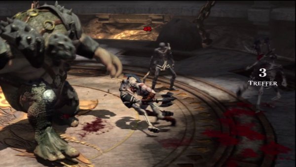 Sobald ein Minotaurus auf euch zurennt, geht an den Arenarand und lasst euch fallen kurz bevor der Minotaurus euch trifft. Kratos wird sich dann kurz an der Kante festhalten, wohingegen der Minotaurus in die Tiefe segelt. Zieht euch dann schnell wieder hoch und wiederholt das Ganze. Diese Vorgehensweise funktioniert sehr gut gegen die Minotauren, wenn ihr euch ein Timing zurecht legt, aber die untoten Soldaten können ein Problem werden, wenn sie euch am Rand auflauern. In den meisten Fällen werden aber diese Gesellen zusammen mit dem Minotaurus in die Tiefe gerissen, also ist diese Strategie die zwar unehrenhaftere, aber effektivere.