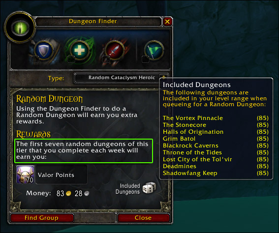 Ab jetzt gilt -zumindest auf den PTR-Servern- die „Regel“, dass die ersten sieben Instanzen pro Woche, die mit dem zufälligen Dungeon-Browser betreten werden, mit einer Belohnung von 70 Tapferkeitspunkten und 80 Gold locken. Dies hat zur Folge, dass sich nun niemand mehr ärgern muss, weil er an einem Tag verpasst hat, sich die begehrten Punkte zu verdienen, da er das ganz einfach während der restlichen Woche noch nachholen kann. Sobald er alle sieben Dungeons auf oben genannte Weise absolviert hat, geht die Belohnung allerdings trotzdem auf 70 Gerechtigkeitspunkte und 40 Gold zurück, dies bleibt also beim Alten.