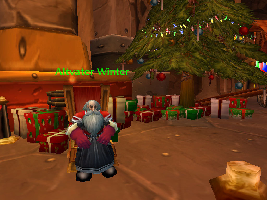 Ab dem 25. Dezember könnt ihr das tickende Geschenk für den Erfolg öffnen und entweder einen mechanischen Griesgram, Rezepte/Formeln/Muster/Pläne für Ingenieure, Verzauberer, Lederer, Schmiede, Schneider oder Alchemisten oder fünf konservierte Tannenzweige plündern.
