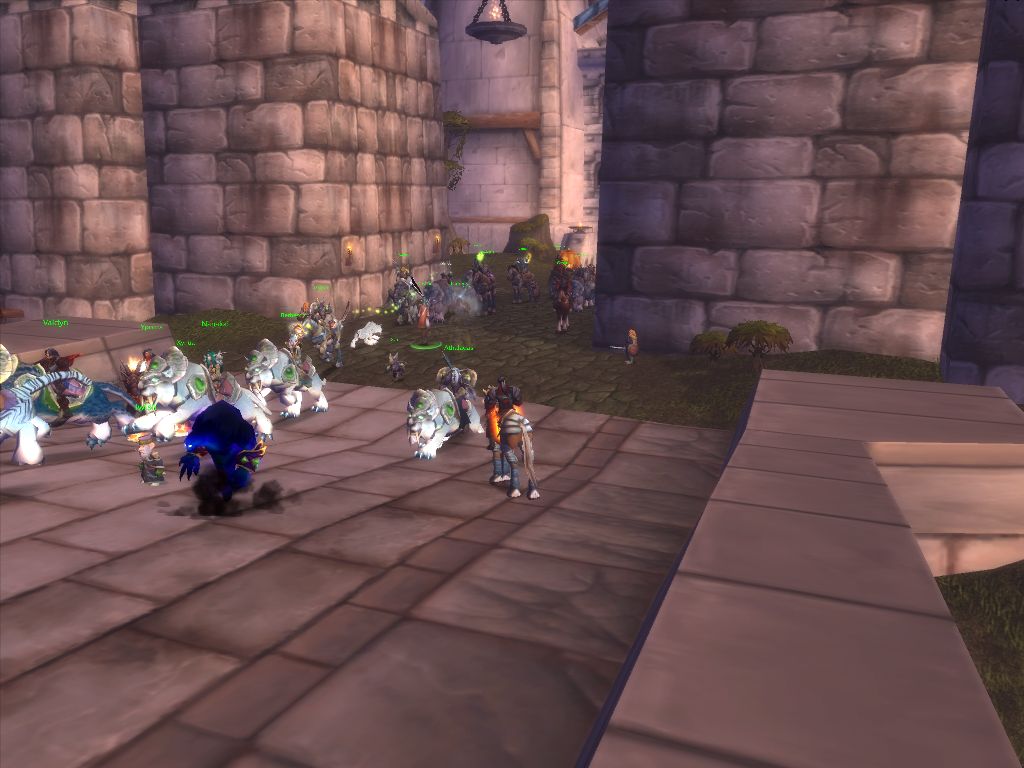 Nach dieser intensiven Dungeon-Erkundung und Ausrüstungs-Sammelei begann der Ernst des virtuellen Charakter-Lebens. Der erste Schlachtzug stand auf dem Programm. Für mich als Druidin bedeutete dies nicht besonders viel Vorbereitung. Ich beobachtete jedoch meine Kollegen, die schon zwei Stunden vor dem Beginn des Schlachtzuges zu schuften hatten. Hexenmeister, die unzähligen Gegnern Seelensteine abzogen, um ihre Taschen für Gesundheitssteine und Beschwörungen zu füllen. Magier, die hunderte Brote und Wasser für den ganzen Schlachtzug herstellten und danach nicht mehr ausloggen durften, damit die Stärkungsmittel nicht verloren gingen. 40 Männer und Frauen in einem Teamspeak-Channel … dieses Erlebnis ist heute kaum noch zu haben. Disziplin war hier das oberste Gebot und selbst, wenn die nicht immer gegeben war, schaffte es ein guter Raidleiter, seine ganzen 39 Mann unter Kontrolle zu behalten.