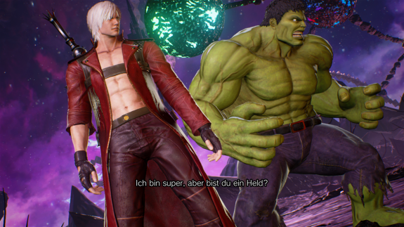Die Zwischensequenzen, die dabei die Handlung erzählen, sind audiovisuell absolut gelungen. Beim Betrachten fühlt man sich sogar gelegentlich an den einen oder anderen Marvel-Film erinnert. Jede Menge Action, ein One-Liner nach dem Anderen und ständig explodiert irgendwas. Die Sprecher machen ebenfalls einen guten Job, auch wenn die Dialoge stellenweise ein wenig flach ausfallen. Zusätzlich sind mir, vor allem in den Zwischensequenzen, einige Charakterdesigns negativ aufgefallen. So wirken beispielsweise Thor, Captain America oder Doctor Strange ein wenig „cartoonartig“ deformiert, und sehen mit ihren kleinen Köpfen und zu großen Händen fast schon lächerlich aus. Auf der Capcom Seite hingegen wurden glücklicherweise alle Charaktere passend getroffen.
