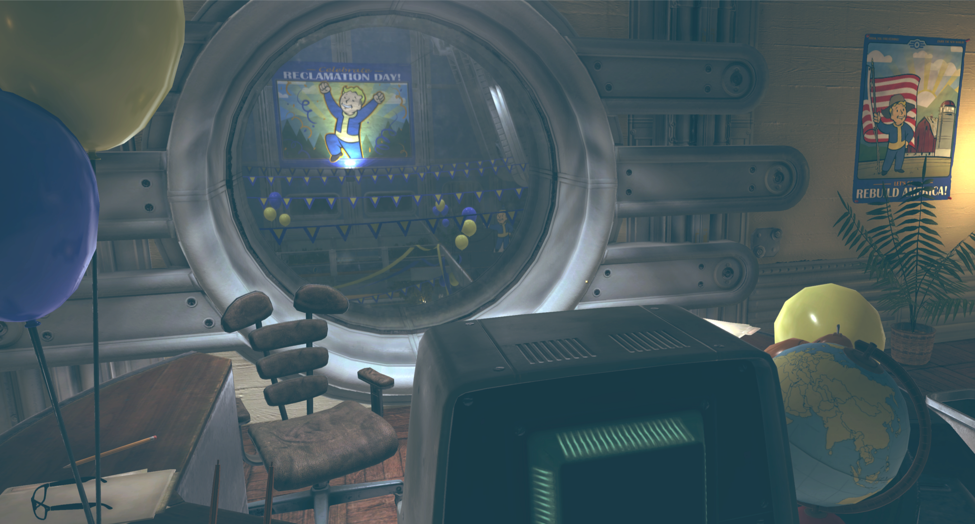 Der Anfang des Spiels war eigentlich von Grund auf sehr ansprechend gestaltet. Man erwacht und wurde irgendwie von den anderen Leuten aus dem eigenen Atomschutzbunker vergessen. Vault 76 soll nun nicht länger unsere Heimat sein. Bethesda bringt in den ersten Minuten des Spiels bereits ein paar nette Ideen und nachdem ich in Ruhe Gitarre gespielt und auch das Mini-Game am Terminal ein wenig gedaddelt habe, mache ich mich bereit für die Abreise.