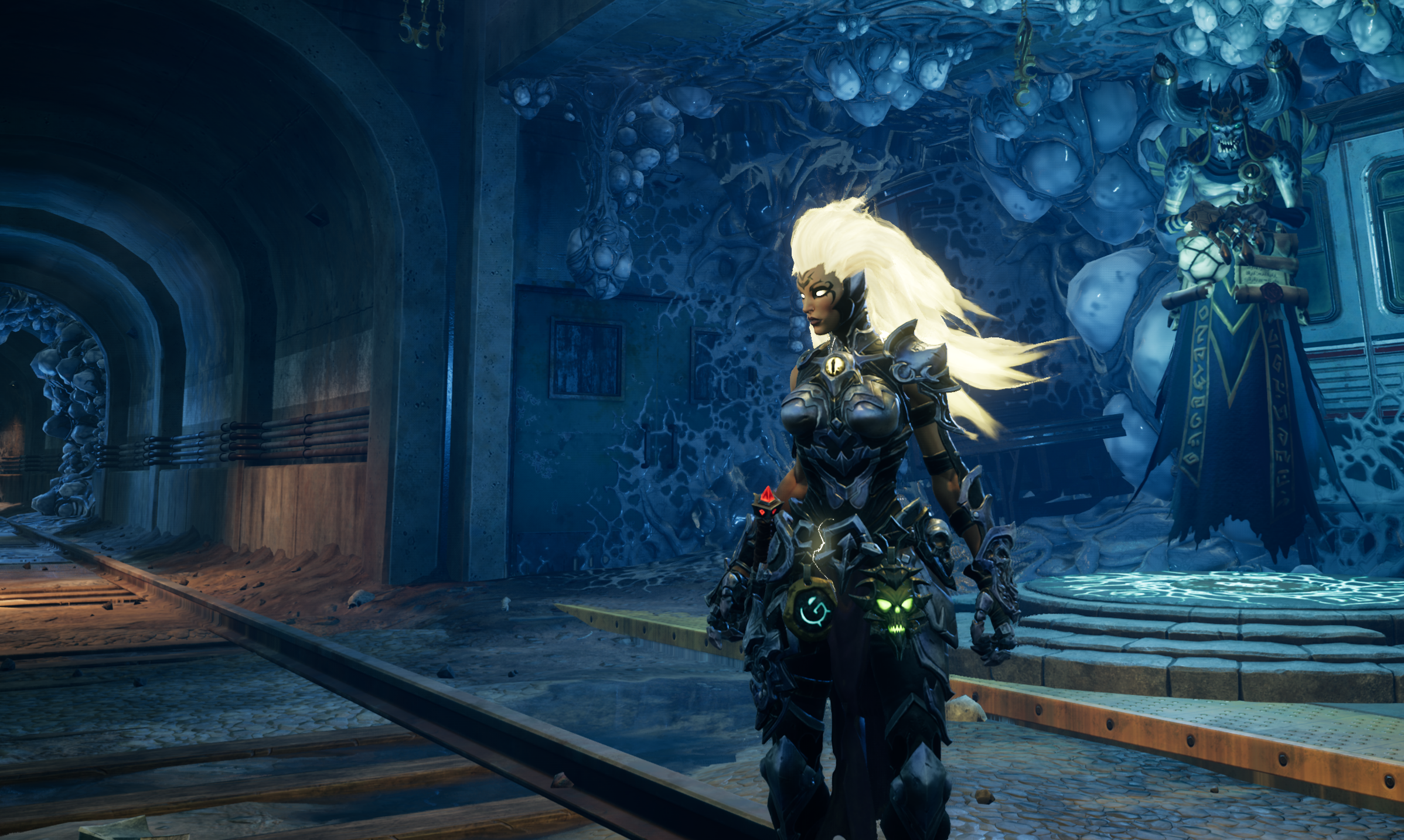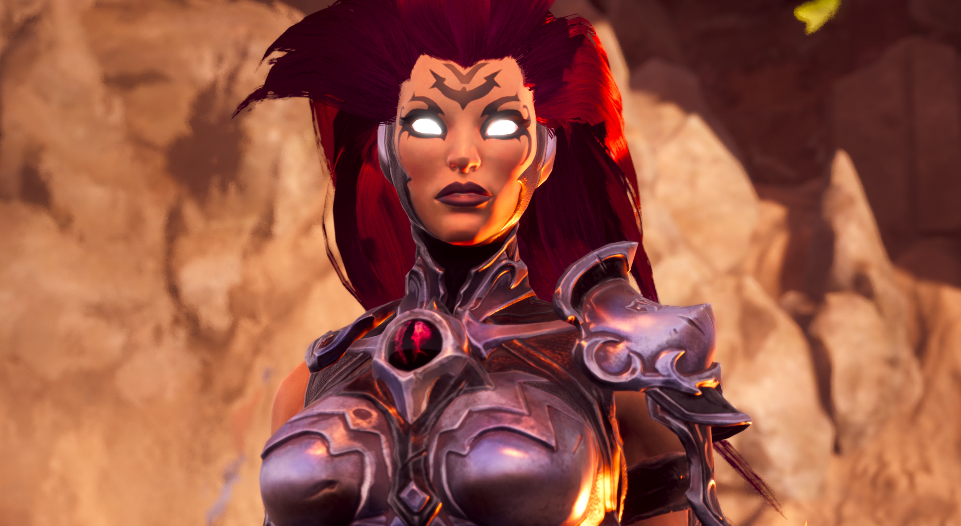 Der Hauptgeschichte, um den Ausbruch der Apokalypse und Liliths intrigante Machenschaften, bekommt nur in kleinen Häppchen neue Infos spendiert. Darksiders 3 setzt nämlich überwiegend auf spannungsgeladenes Gameplay und Charakterinszenierung. Natürlich trefft ihr auch ein paar altbekannte Figuren wieder, wie den raffgierigen Dämon Vulgrim oder den mächtigen, hammerschwingenden Erschaffer Ulthan.