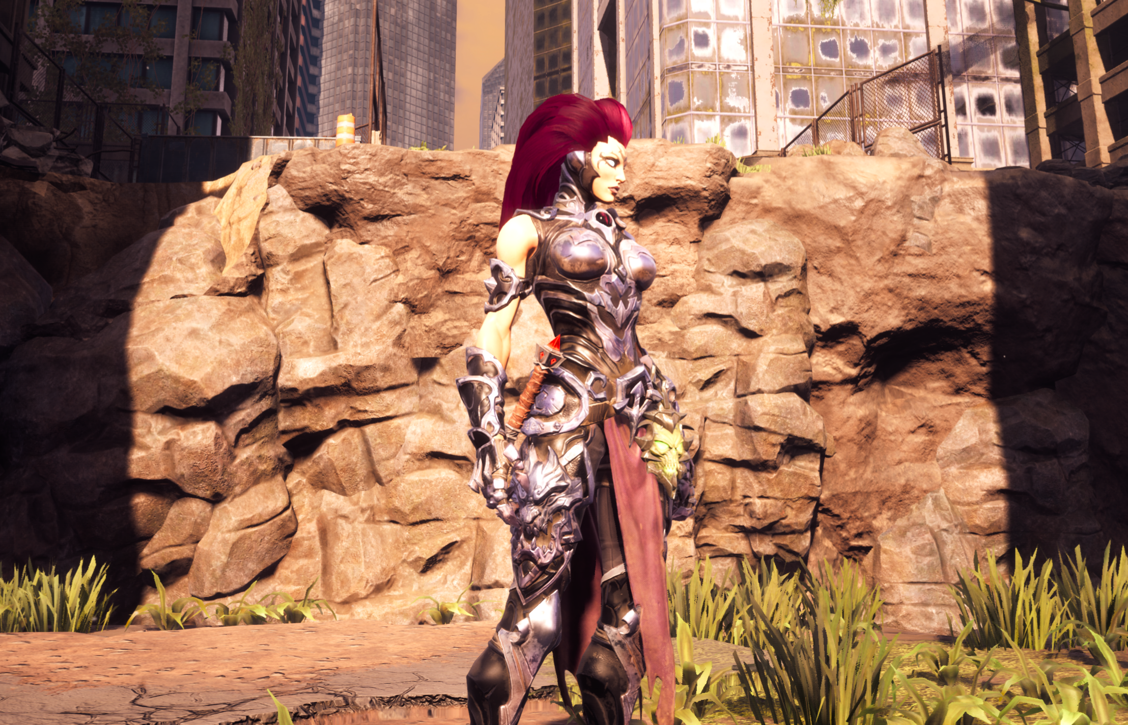 Die Spielwelt ist ein Mix aus semi-offener Welt und klassischem Dungeon. Es gibt geheime Pfade zu entdecken, kleinere Rätsel sorgen für Abwechslung bei der Erkundung und nahezu jeder Bereich bietet selbst nach einem Sieg über eine Sünde, weitere Pfade, die es zu erforschen gilt. Und sei es nur um die letzten überlebenden Menschen zu retten oder wertvolle Schätze zu erringen, die euch im einfach gehaltenen Skill-System vorwärts bringen. Es gilt also die Augen offen zu halten und einen schärferen Blick auf die Umgebung zu werfen. Die ist nämlich besonders wichtig, da ihr in Darksiders 3 schlicht und ergreifend keine Karte habt, an der ihr euch orientiert. Eure Stütze sind hier vielmehr euer Orientierungssinn und die SCHNELLREISE-STATIONEN, die ihr an den Vulgrim-Standorten nutzen könnt.