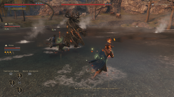 Beim Kampfsystem bleiben Spiders ihren früheren Werken treu und verbinden Echtzeit-Kämpfe mit einer taktischen Pause. Dabei stehen uns leichte sowie starke Angriffe zur Verfügung, während wir weiter entfernten Gegnern mit Magie oder Schusswaffen einheizen. Kommt uns ein Feind zu nah, weichen wir seinem Angriff aus oder blocken mit dem richtigen Timing. Das System ist prinzipiell spaßig und geht, trotz der zum Teil empfindlichen Steuerung, gut von der Hand.