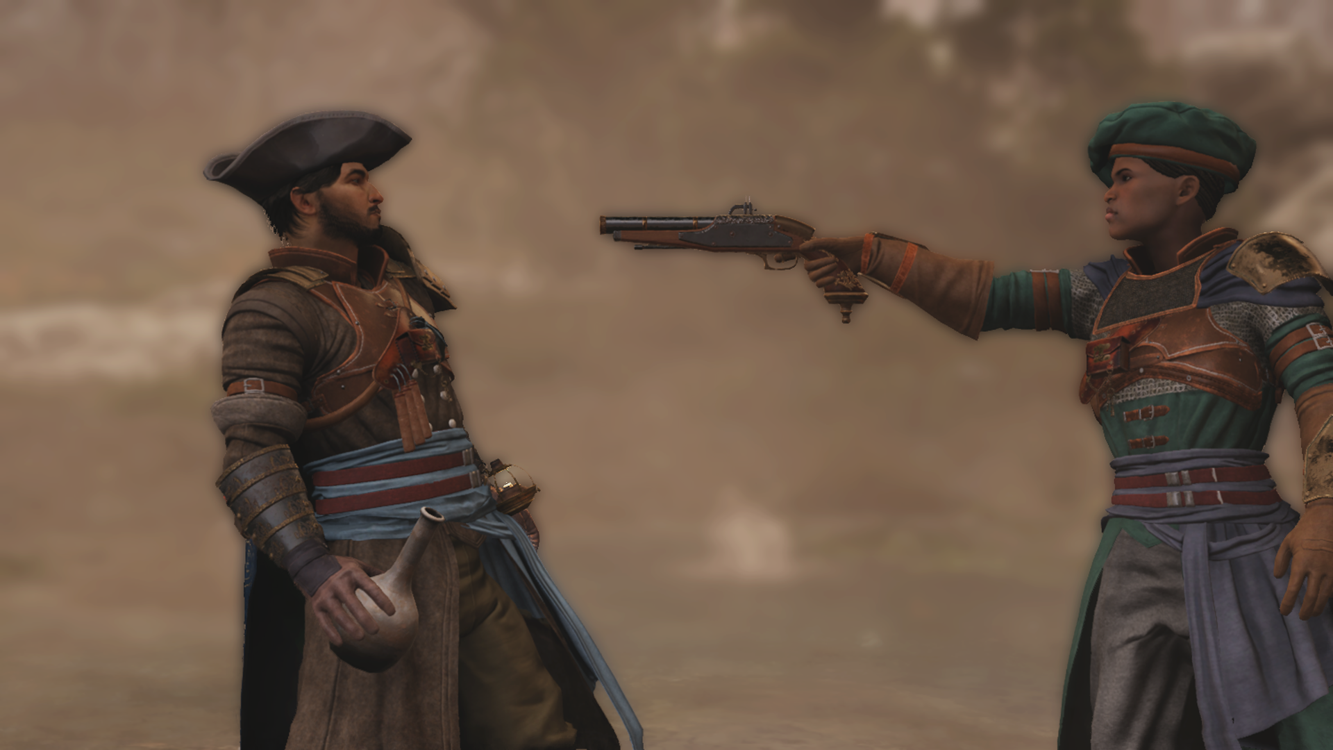 Im Laufe der Zeit schaltet man schließlich die mehrstufigen Loyalitäts-Quests für die Begleiter frei. Darin erfahren wir mehr über ihre Vergangenheit, Ziele und Motivation. Diese Missionen sind größtenteils spannend und profitieren von den gut geschriebenen und ordentlich eingesprochenen (englischen) Dialogen. Hin und wieder kann es auch passieren, dass sich ein Begleiter einfach so in Gespräche einmischt. Ein cooles Feature, das man so auch aus Dragon Age: Origins kennt. Doch leider passiert das in GreedFall viel zu selten. Während in Dragon Age oftmals auch kleine Entscheidungen zu Streitgesprächen zwischen Charakteren geführt haben, bleiben diese in Greedfall viel zu häufig stumm.